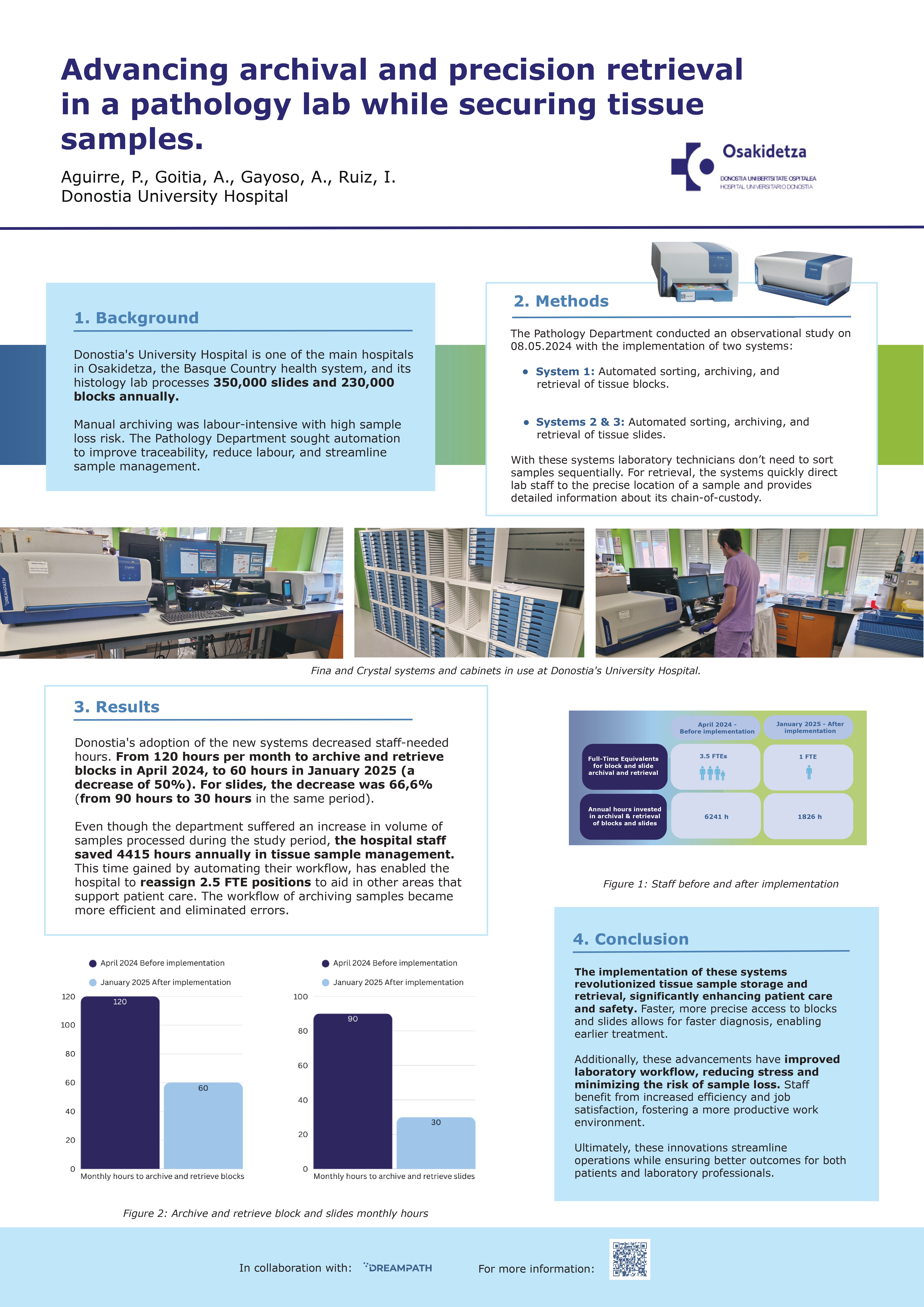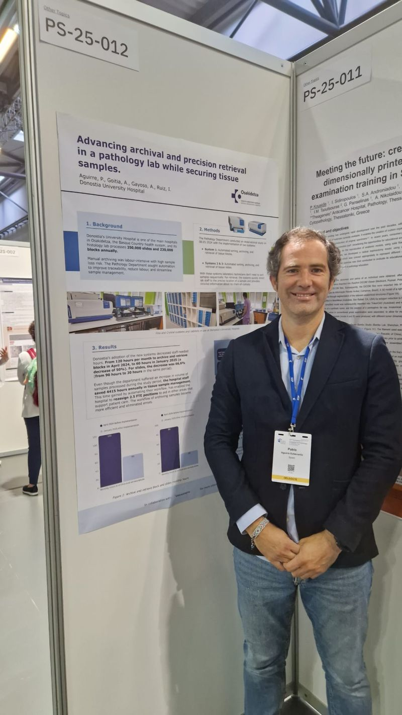 La evidencia de la transformación fue presentada en el Congreso Europeo de Anatomía Patológica (Viena, Septiembre 2025) por el Dr. Aguirre, Patólogo en el Hospital de Donosti, donde se demostró la impresionante optimización de tiempo entre el sistema tradicional de archivo Vs los sistemas Dreampath